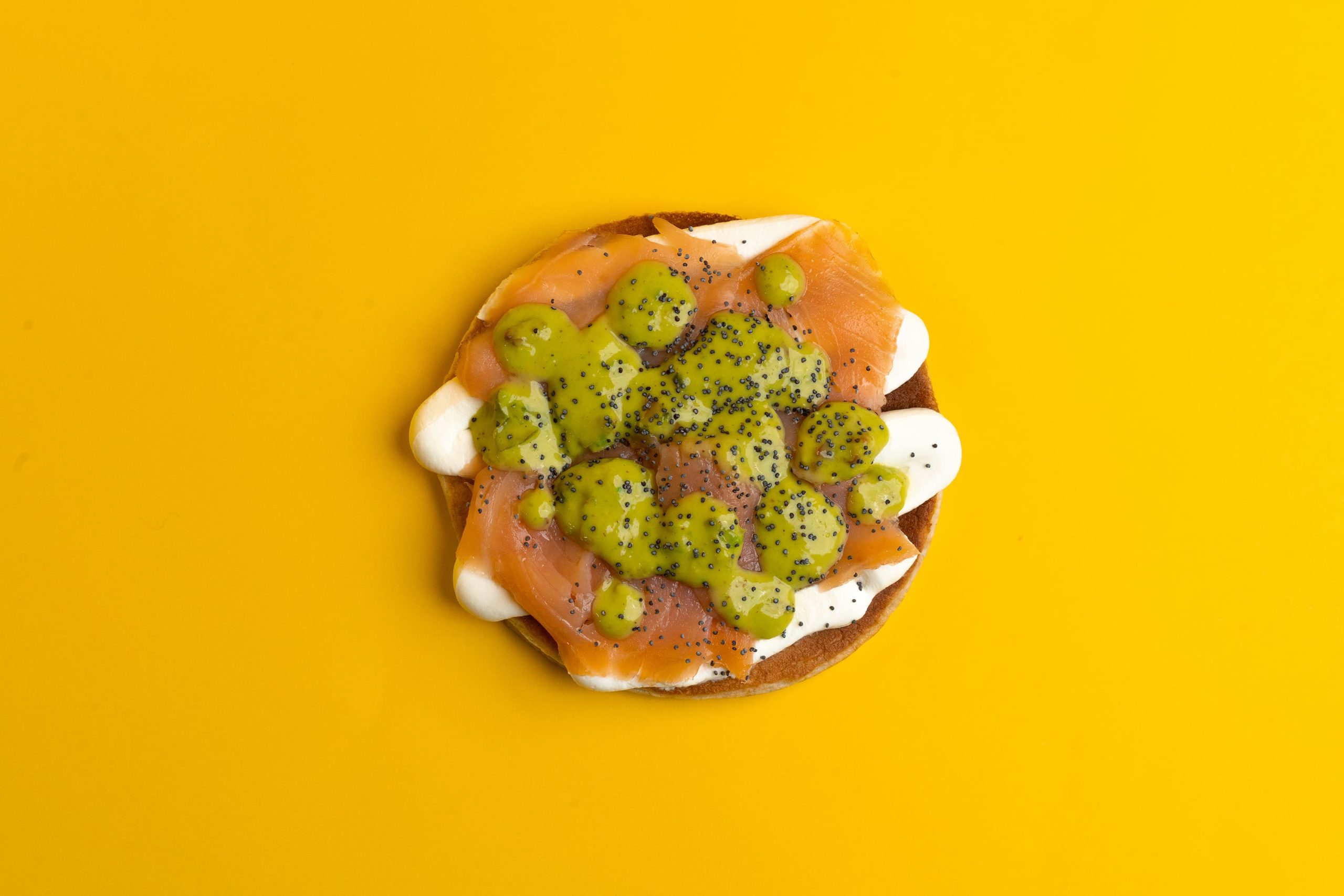 impasto classico – guacamole(leggermente piccante) – salmone affumicato – philadelphia – lime – semi papavero